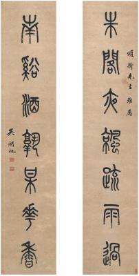 吴湖帆(1894~1968) 篆书 七言联