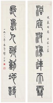 韩登安(1905~1976) 篆书 七言联