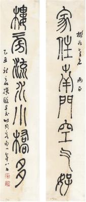 HAN QIUYAN SEVEN-CHARACTER COUPLET IN SEAL SCRIPT