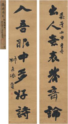 ZHANG TINJI SEVEN-CHARACTER COUPLET IN RUNNING SCRIPT