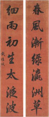 QIAN WEICHENG SEVEN-CHARACTER COUPLET IN RUNNING SCRIPT