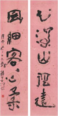 YANG SHANSHEN FIVE-CHARACTER COUPLET IN RUNNING SCRIPT