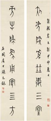 张石园(1899~1959) 篆书 八言联