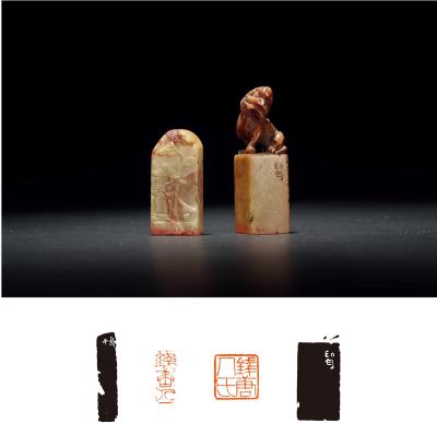 QING DYNASTY A SHOUSHAN AND A QINGTIAN STONE SEAL ENGRAVED BY ZHONG YIJING AND SHOU SHIGONG
