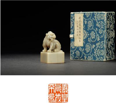 QING DYNASTY A SHOUSHAN STONE ‘BEAST’ SEAL MADE BY YANG YUXUAN FOR EMPEROR QIANLONG’S USE