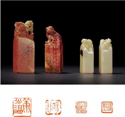 FOUR SHOUSHAN AND QINGTIAN STONE ‘BEAST’ SEALS ENGRAVED BY JIN TIEZHI AND SHAN XIAOTIAN