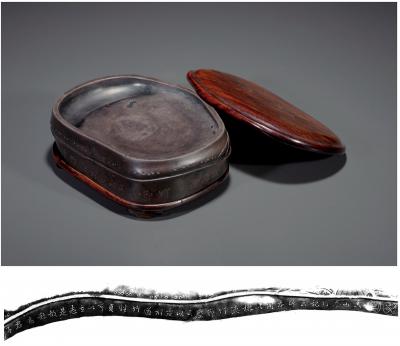 QING DYNASTY A BAMBOO-SHAPED DUAN INKSTONE INSCRIBED BY LING YUN