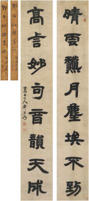 签条: 邓石如隶书联。顾斋所藏,仲英。钤印: 孙(白)