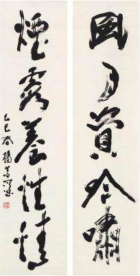 YANG SHANSHEN FIVE-CHARACTER COUPLET IN RUNNING SCRIPT
