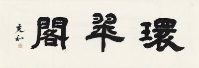 纸本 横披 识文: 环翠阁。 款识: 充和。 钤印: 张充和(白) ZHANG CHONGHE CALLIGRAPHY Ink on paper, horizontal scroll 尺寸: 89×30cm 估价: 20,000-40,000 元