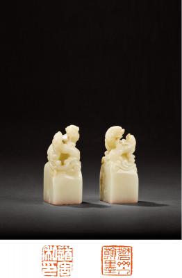 张充和(1913~2015)旧藏 将军洞白芙蓉石螭钮对章