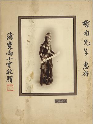 尚小云签名照一帧,北京大北照相馆所摄。该馆始建于1921年,为著名的摄影老字号,其拍摄之戏装照非常出名。