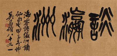 款识: 海客谈瀛洲,谪仙句也。甲子冬仲,吴昌硕八十又一。