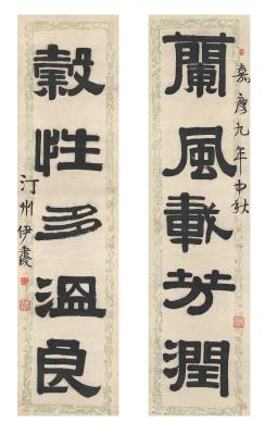伊秉绶(款)(1754~1815) 隶书 五言联