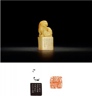 AN ENTERTAINING SHOUSHAN STONE 'LION' SEAL ENGRAVED BY FENG KANGHOU