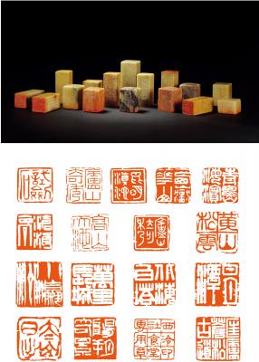 陆俨少、陈巨来、钱君匋、王个簃、邹梦禅、诸乐三、方去疾、李伏雨、高式熊、张寒月、韩天衡、郁重今、余 正、蔡谨士等刻青田石闲章十六方