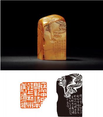 A LIGHTLY CARVED ENTERTAINING SHOUSHAN STONE SEAL WITH CLOUD PATTERN ENGRAVED BY TANG ZUISHI