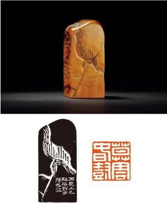 A LIGHTLY CARVED ENTERTAINING SHOUSHAN STONE SEAL WITH LANDSCAPE PATTERN ENGRAVED BY TANG ZUISHI