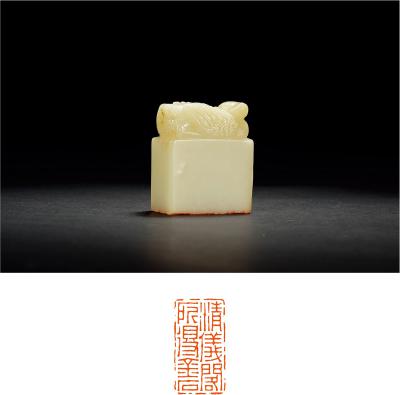QING DYNASTY A WHITE SHOUSHAN ‘FURONG’ STONE ‘BIRD’ SEAL FOR ZHANG TINGJI’S PRIVATE USE