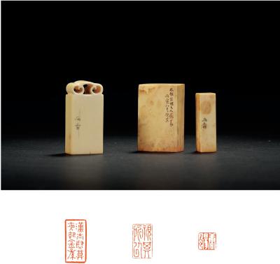 QING DYNASTY THREE BONE SEALS ENGRAVED BY WANG YUN, ETC.