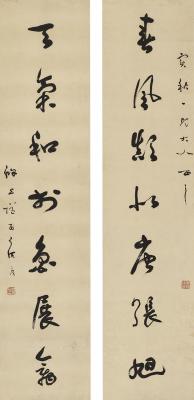 HOU DU SEVEN-CHARACTER COUPLET IN CURSIVE SCRIPT