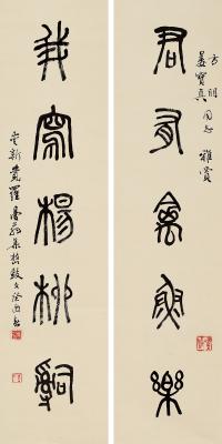SHA MANWENG FIVE-CHARACTER COUPLET IN SEAL SCRIPT