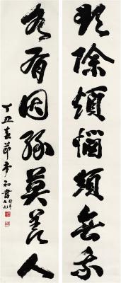 MASTER MENG CHU SEVEN-CHARACTER COUPLET IN RUNNING SCRIPT