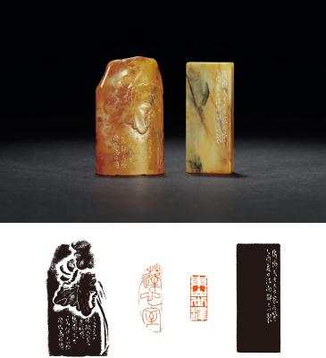 AN ENTERTAINING SHOUSHAN AND AN ENTERTAINING CHANGHUA STONE SEALS ENGRAVED BY DENG DACHUAN