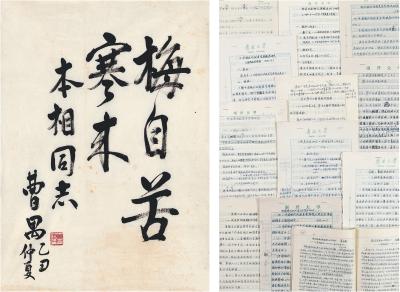 田本相上款。田氏自1978年开始从事曹禺剧作品研究,建国后撰写了第一部研究曹禺著作的专著《曹禺剧作论》,并在曹禺逝世前受其委托,编辑《曹禺全集》,二人相交甚久。