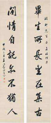 WANG TONGYU EIGHT-CHARACTER COUPLET IN RUNNING SCRIPT