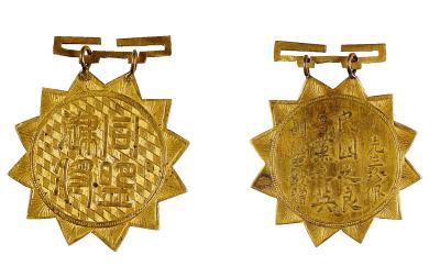 本标的为胡汉民特制同盟健将徽章一枚,正面胡汉民题字,落款“胡汉民敬赠”,背面篆书“同盟健将”。