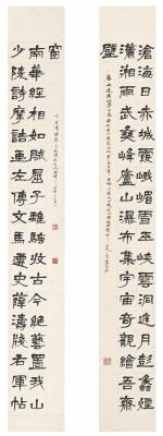 萧娴(1902~1997) 隶书 邓石如学生撰三十七言联