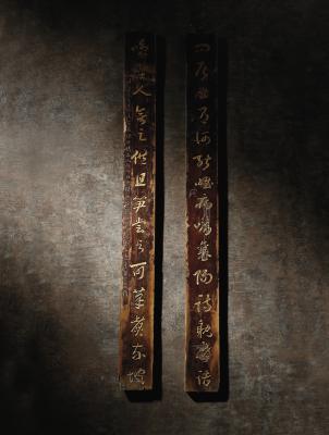契厂[清] 木刻草书 清宗元鼎撰十五言联