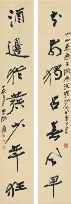 ZHANG DAQIAN SEVEN-CHARACTER COUPLET IN RUNNING SCRIPT