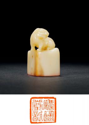 印文: 庆余堂记 QING DYNASTY A SHOUSHAN ‘FURONG’ STONE ‘BEAST’ SEAL 尺寸: 3×3×5.5cm 估价: 20,000-30,000 元