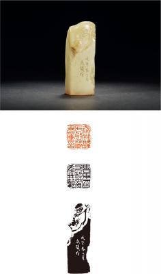 QING DYNASTY A LIGHTLY CARVED WHITE SHOUSHAN ‘FURONG’ STONE SEAL ENGRAVED BY ZHAO ZHICHEN