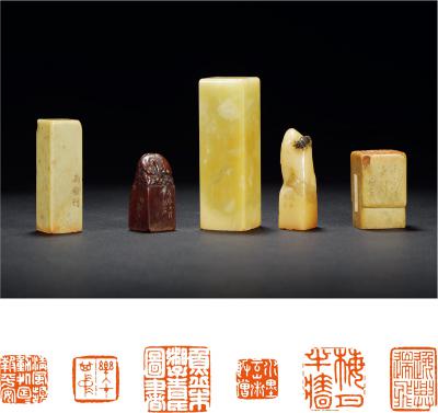 QING DYNASTY FIVE STONE SEALS ENGRAVED BY CHONG EN, CHENG YIXING, PAN HAN, ETC.