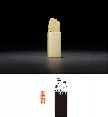 QING DYNASTY AN ENTERTAINING SHOUSHAN ‘FURONG’ STONE ‘BEAST’ SEAL ENGRAVED BY HU JUE