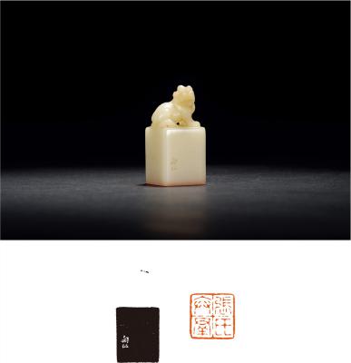 QING DYNASTY A WHITE SHOUSHAN ‘FURONG’ STONE ‘BEAST’ SEAL ENGRAVED BY HU JUE FOR ZHANG BIANQUN’S PRIVATE USE