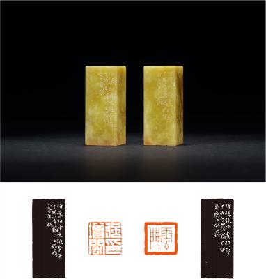 A PAIR OF QINGTIAN STONE SEALS ENGRAVED BY WANG TI FOR QIANG ZENGHONG’S PRIVATE USE