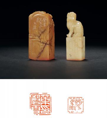 TWO SHOUSHAN STONE SEALS ENGRAVED BY CAO DAJING AND ZHANG XIANGNING