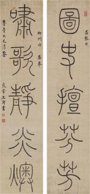 WANG SHU FIVE-CHARACTER COUPLET IN SEAL SCRIPT