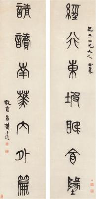 HUANG SHILING SEVEN-CHARACTER COUPLET IN SEAL SCRIPT
