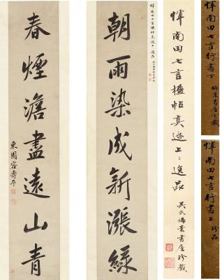 题跋: 恽南田七言楹帖真迹,上上逸品。吴氏梅景书屋珍藏。钤印: 倩盦(白) 吴湖颿(朱白)