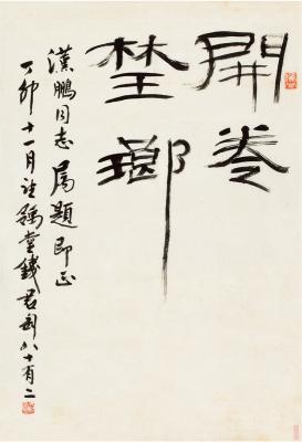 款识: 汉鹏同志属题即正,丁卯十一月望,豫堂钱君匋八十有二。