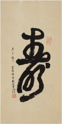 纸本 立轴 识文: 寿。 款识: 庚午秋月,灵隐禅寺根源书,时年六十九。 钤印: 释根源(朱) 无量寿佛(朱) MASTER GEN YUAN CALLIGRAPHY IN CURSIVE SCRIPT Ink on paper, hanging scroll 尺寸: 67.5×34.5cm 估价: 3,000-5,000 元 作者简介: 根源法师[现代],杭州灵隐寺住持。