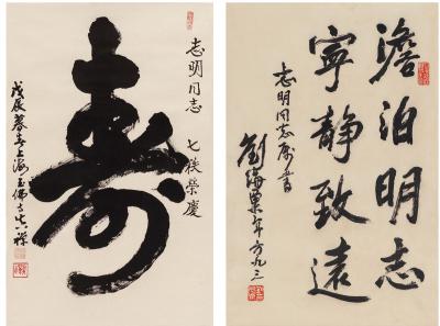 刘海粟(1896~1994)真禅法师(1916~1995) 行书诸葛亮句·草书寿