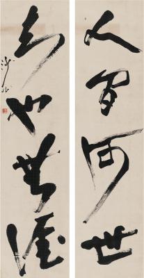 HU XIAOSHI FOUR-CHARACTER COUPLET IN CURSIVE SCRIPT