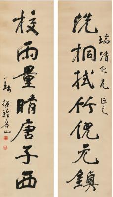 QIAN ZHENHUANG SEVEN-CHARACTER COUPLET IN RUNNING SCRIPT