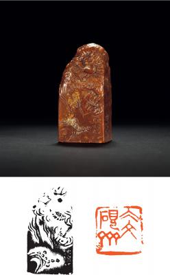 A SHOUSHAN STONE SEAL WITH CLOULD AND DRAGON PATTERN ENGRAVED BY YU RENTIAN